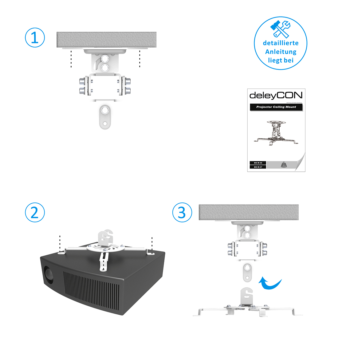 Die deleyCON Universal Beamer und Projektor Deckenhalterung ist kompatibel zu allen gängigen Beamern und Projektoren und kann universell eingesetzt werden.