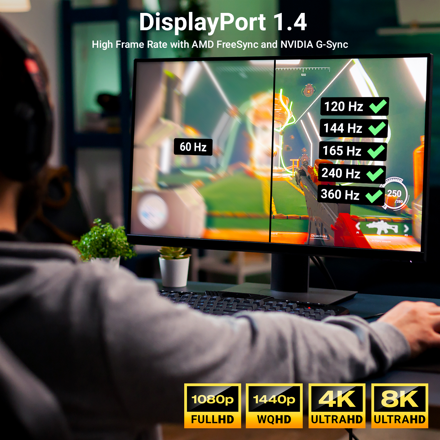 Die neueste Generation - deleyCON DisplayPort Kabel 4K 8K UHD 1.4 HBR3 Display Port Kabel OFC Kupfer