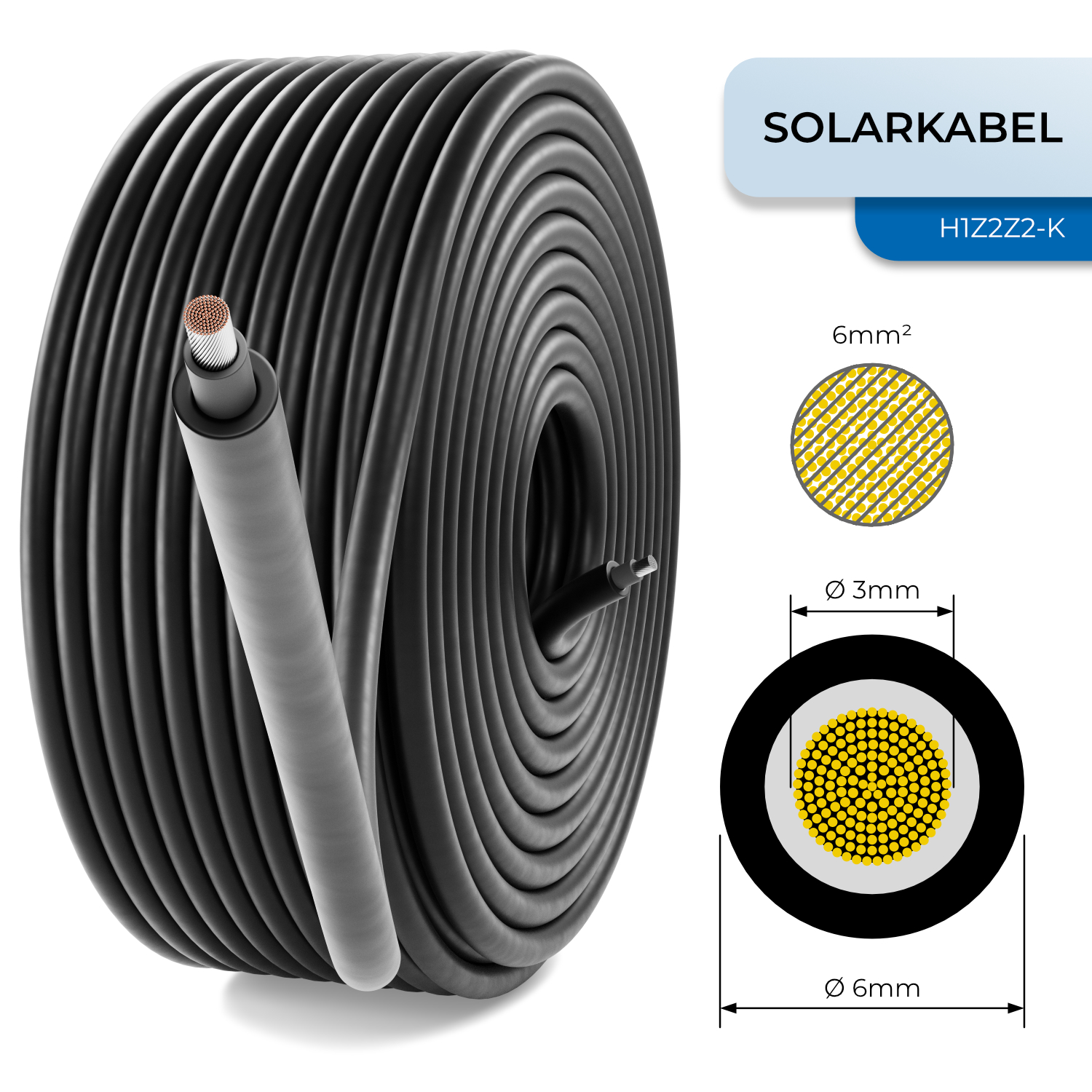 deleyCON 50m Solarkabel 6mm² Photovoltaik-Kabel für PV-Anlagen 1kV AC 1,5kV DC