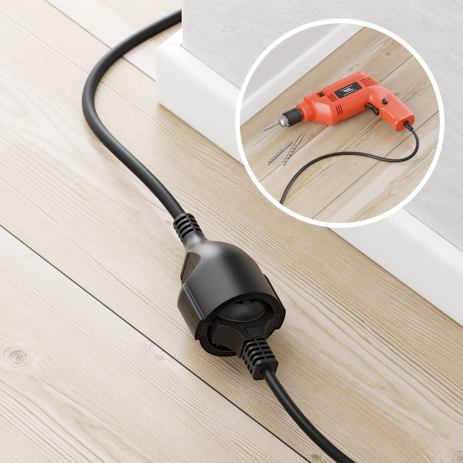 - Zum Einsatz als Verlängerung für Stromkabel, Netzkabel, Euro-Kabel etc.