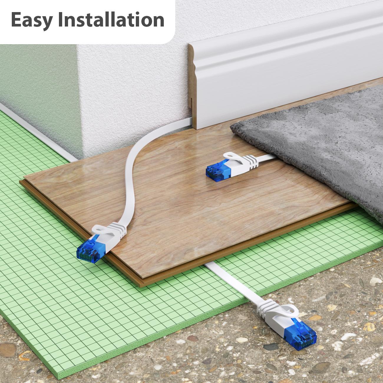 Mit den deleyCON CAT 6 Netzwerk Flachkabeln können Sie im Handumdrehen Ihre Netzwerkfähigen Geräte verbinden. Sie eignen sich hervorragend um unter Laminat oder an Fußleisten entlang verlegt zu werden.