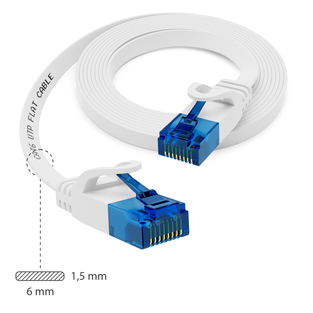 10x 0,5m CAT6 Flaches Netzwerkkabel 1,5mm Flachbandkabel U-UTP RJ45 Weiß