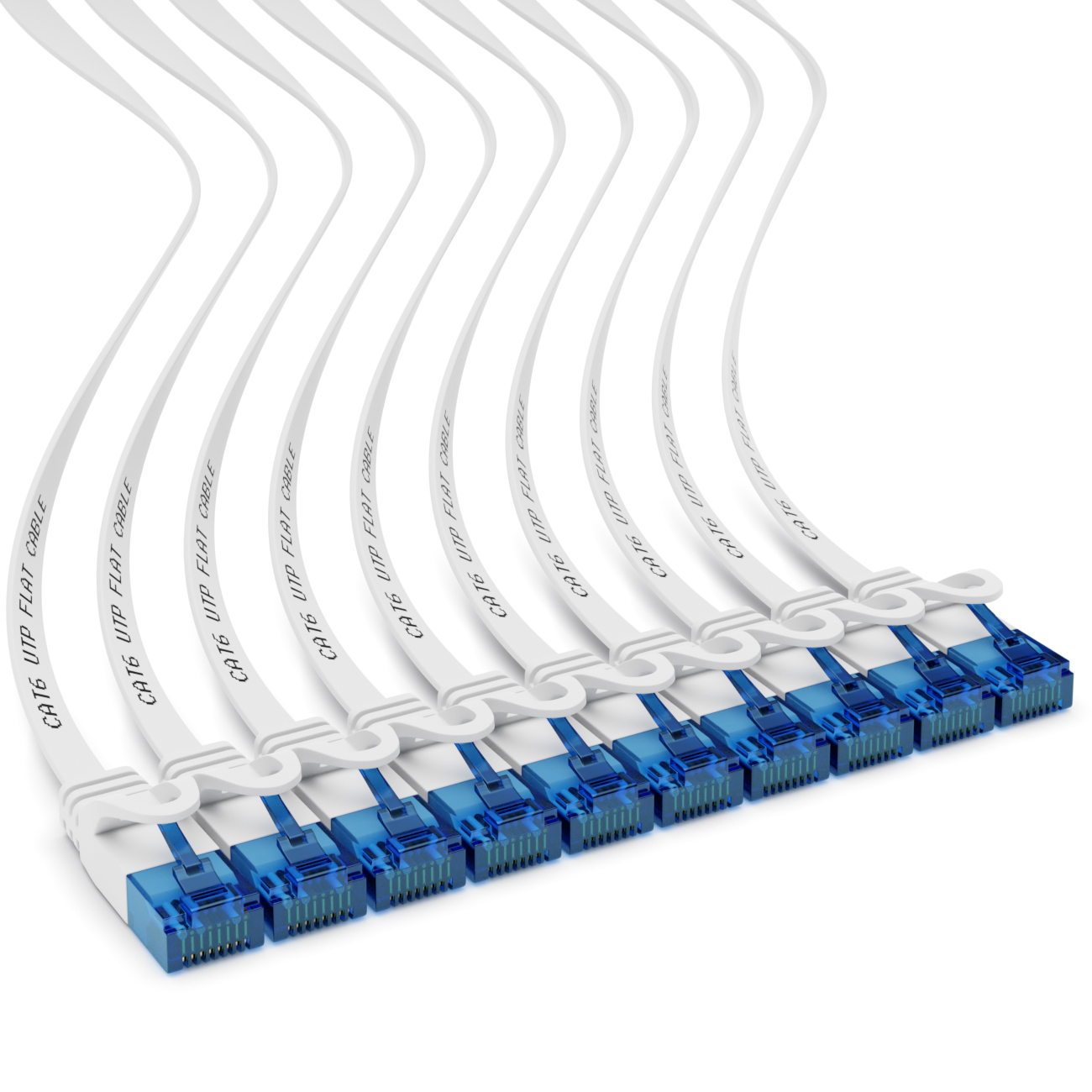 10x 2m CAT6 Flaches Netzwerkkabel 1,5mm Flachbandkabel U-UTP RJ45 Weiß