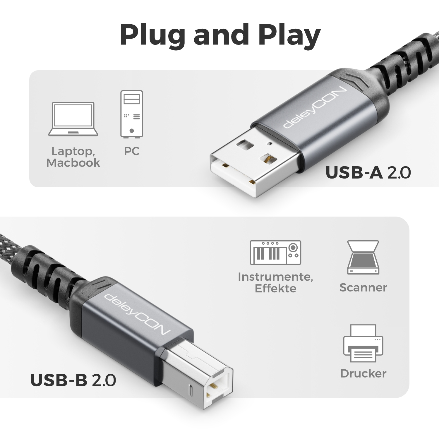 deleyCON USB 2.0 Druckerkabel Scannerkabel