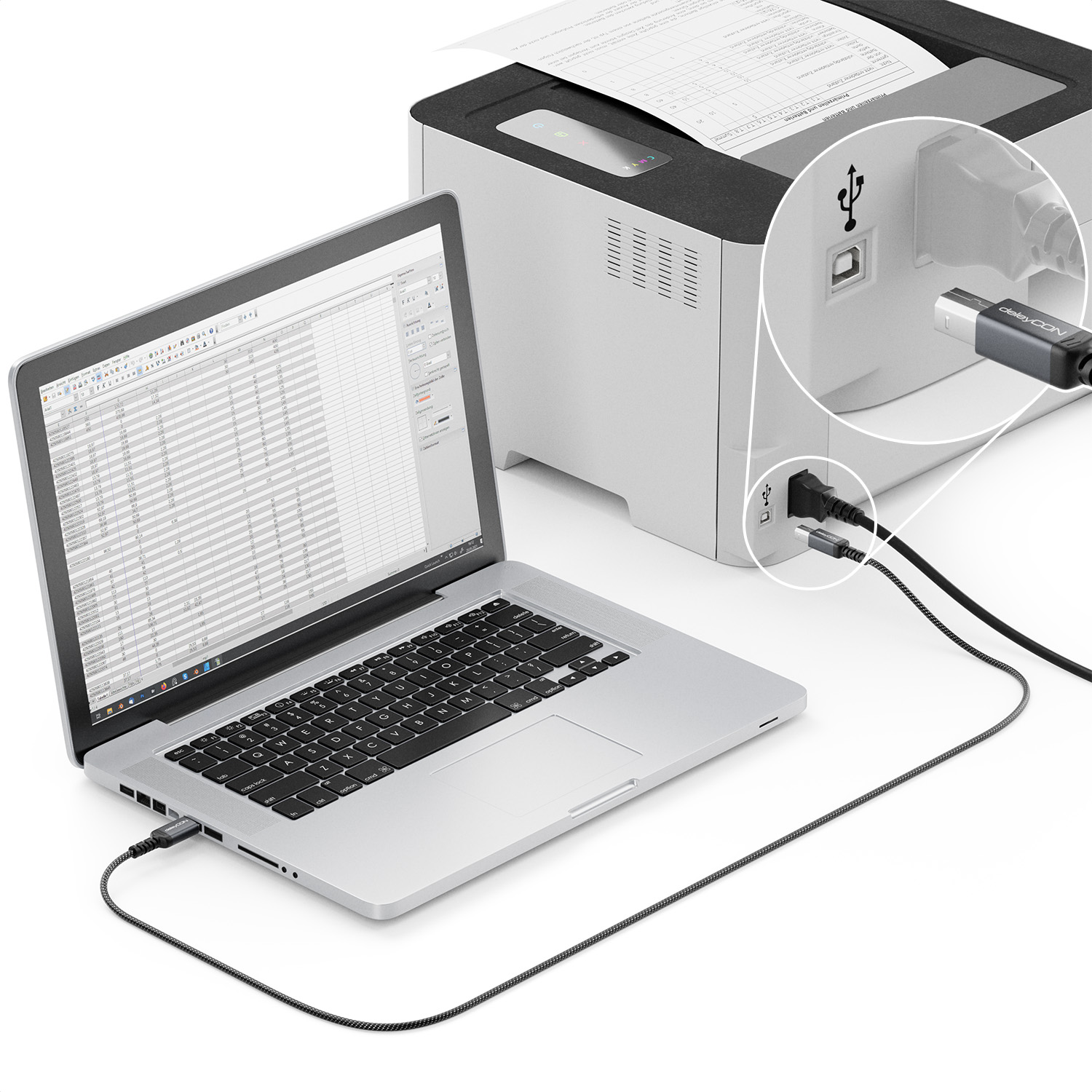 Das deleyCON USB 2.0 Druckerkabel verbindet zuverlässig Computer, Laptops und MacBooks mit Geräten wie Druckern, Scannern oder Audio-Interfaces.