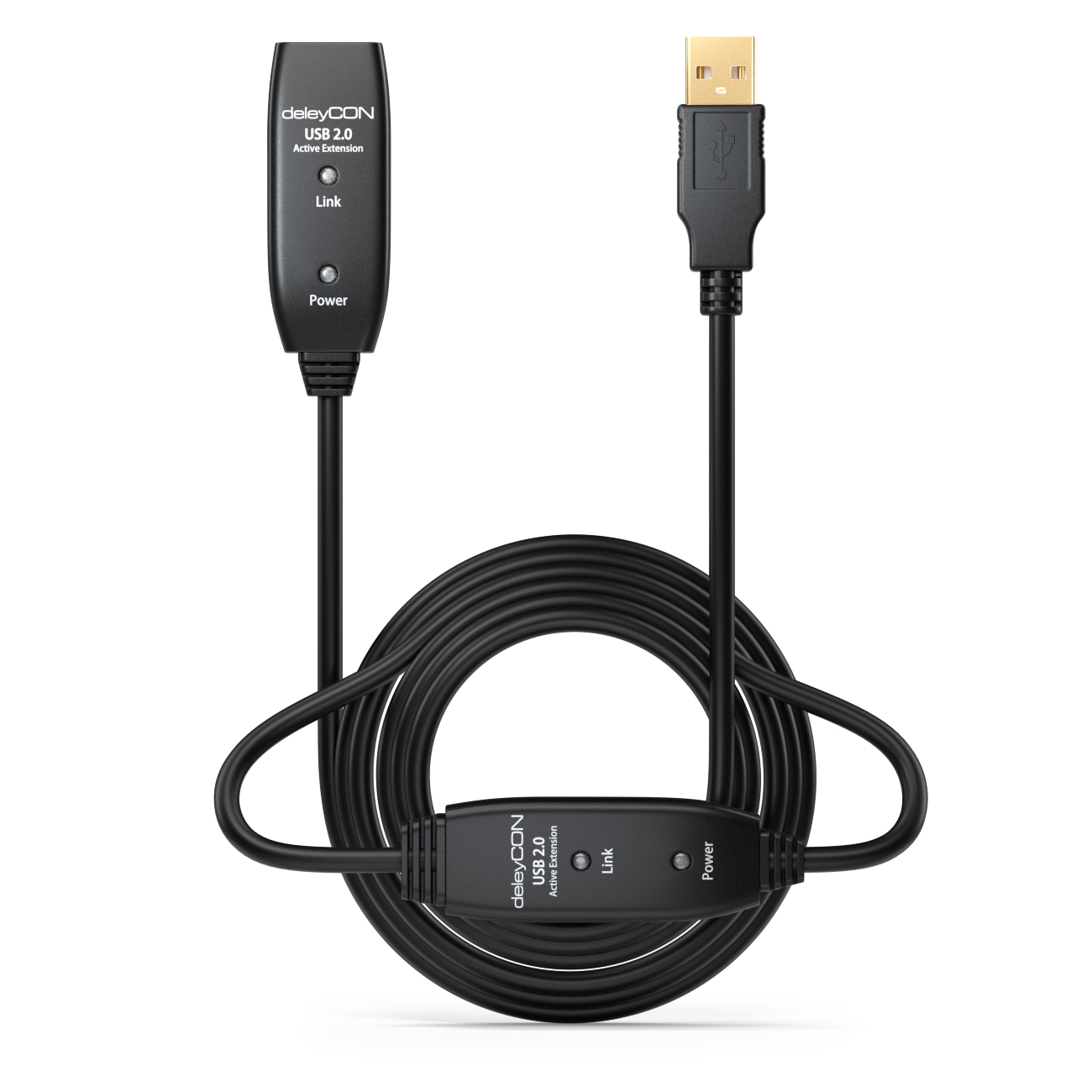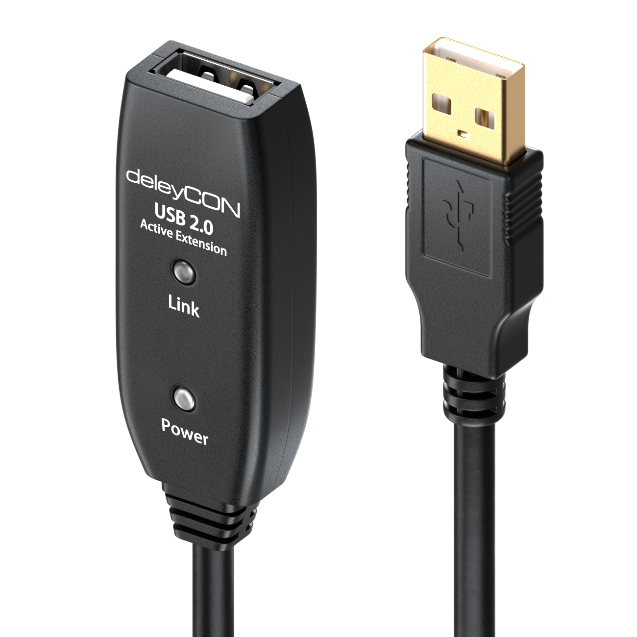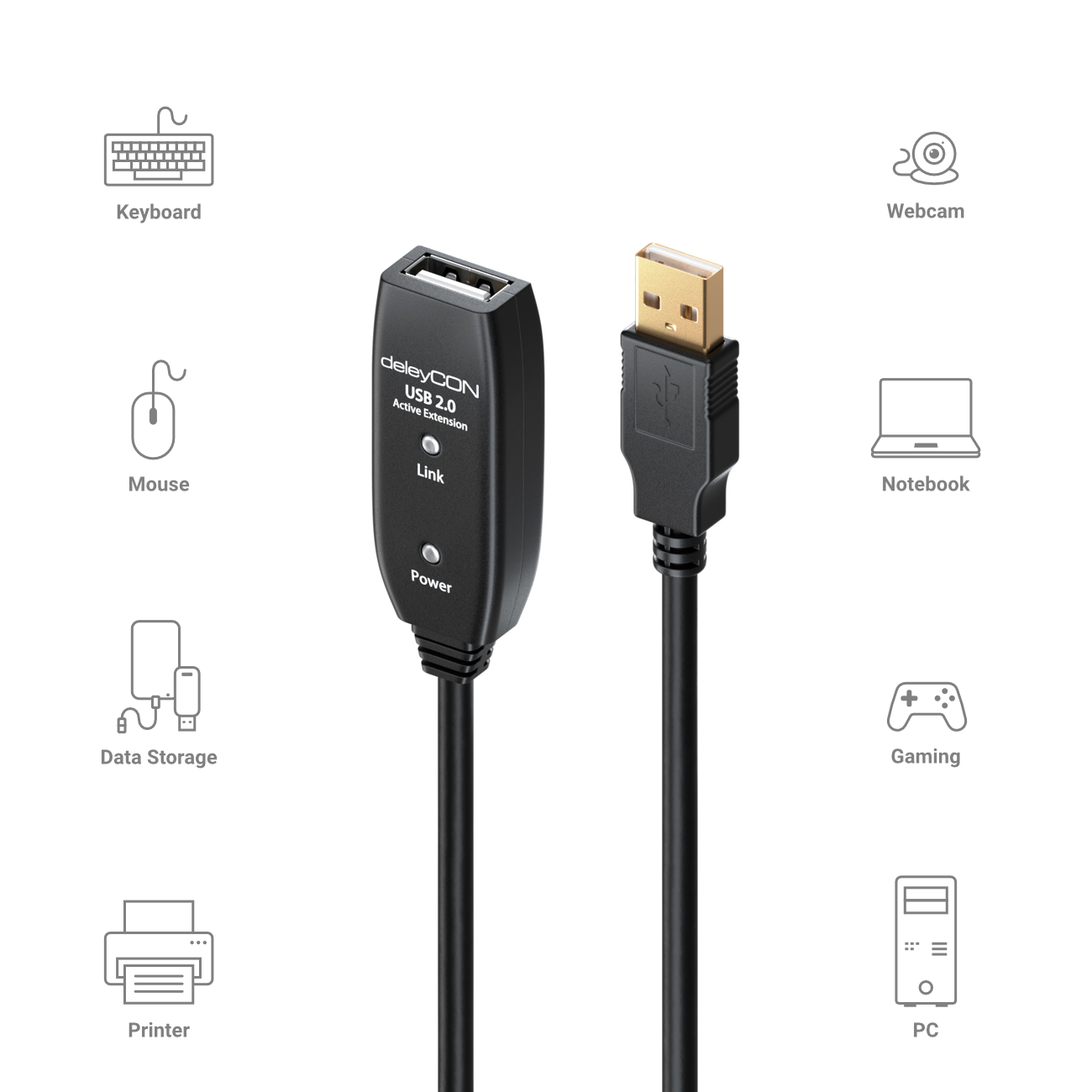 deleyCON Aktive USB 2.0 Verlängerung mit USB-A USB-A Buchse