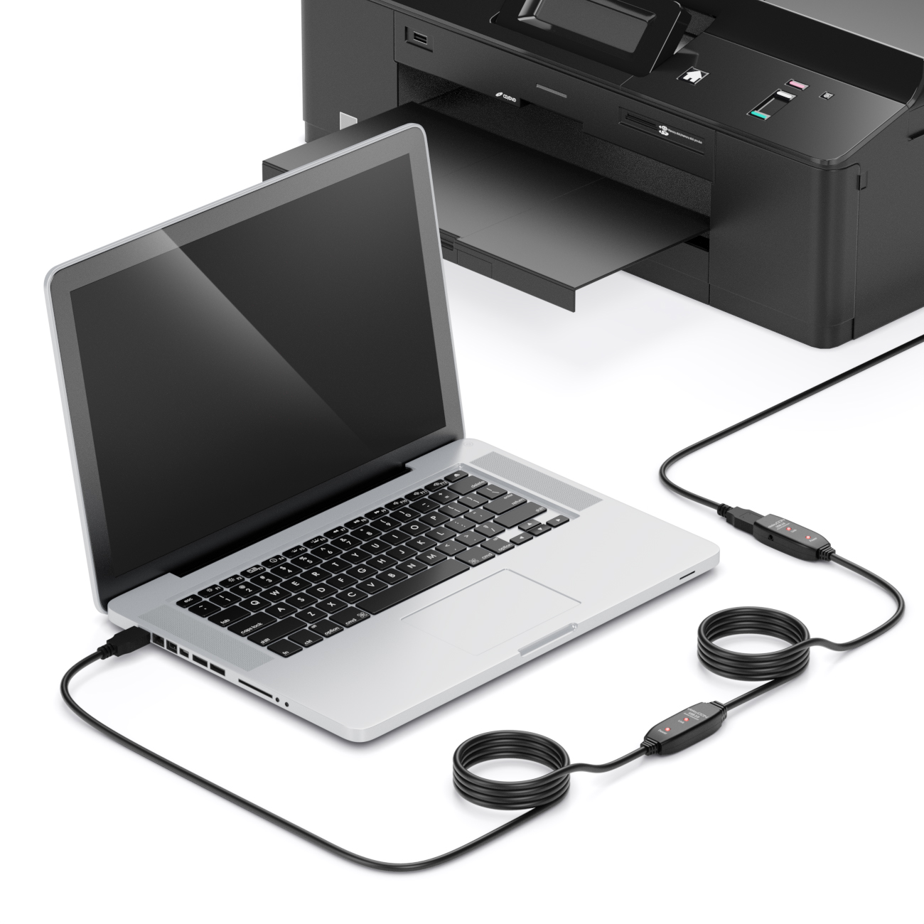 deleyCON 10m Aktive USB 2.0 Kabel Verlängerung mit Verstärker Scanner Drucker
