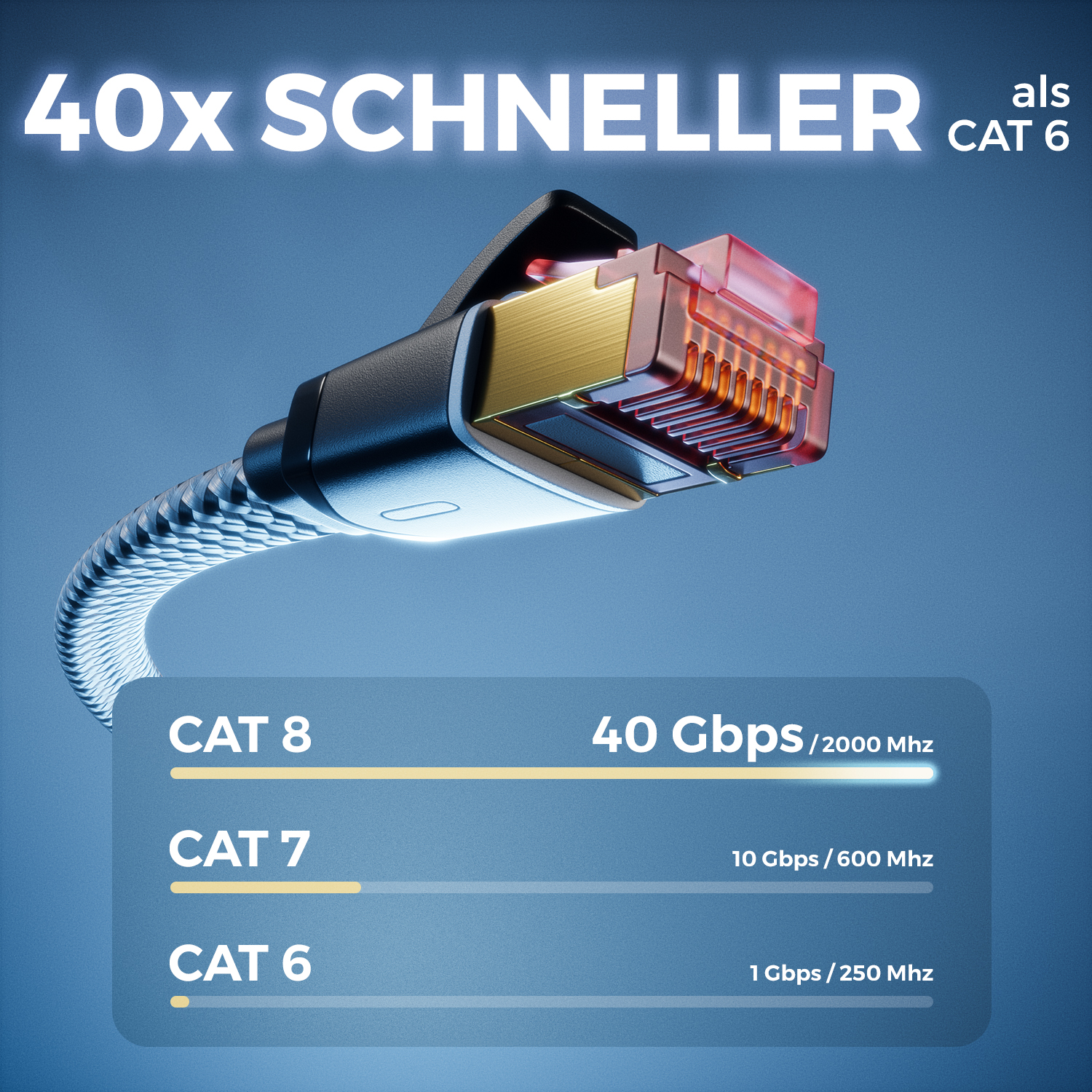 - Abwärtskompatibel zu CAT6a, CAT6 und CAT5e - geeignet für Router, Switches, PCs, Konsolen und Smart-TVs