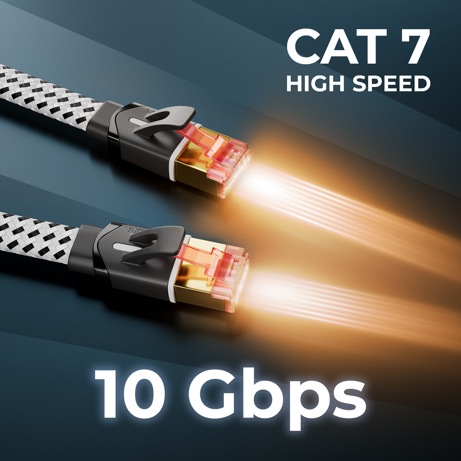 7,5m CAT7 Patchkabel Flachkabel RJ45 Nylon Netzwerkkabel Flach LAN DSL 10Gbit/s