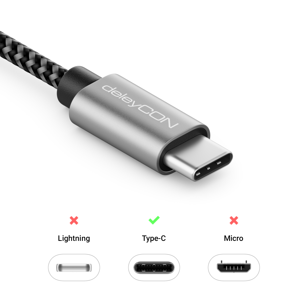 Konzipiert für sichere und schnelle Lade- und Synchronisationsvorgänge sind deleyCON USB-C Kabel mit Nylonmantel Universell für eine Vielzahl an Geräten einsetzbar.