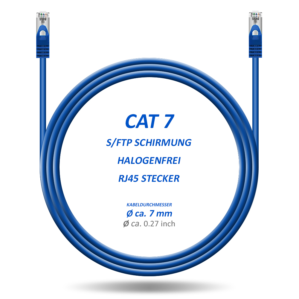 50m CAT7 Patchkabel Netzwerkkabel Ethernet Kabel Netzwerk LAN DSL Kabel Blau