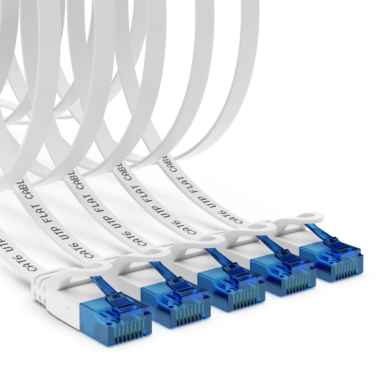 5x 0,25m CAT6 Flaches Netzwerkkabel 1,5mm Flachbandkabel U-UTP RJ45 Weiß