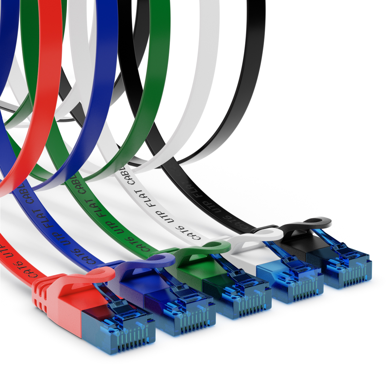 5x 2m CAT6 Flaches Netzwerkkabel 1,5mm Flachbandkabel U-UTP RJ45 Bunt