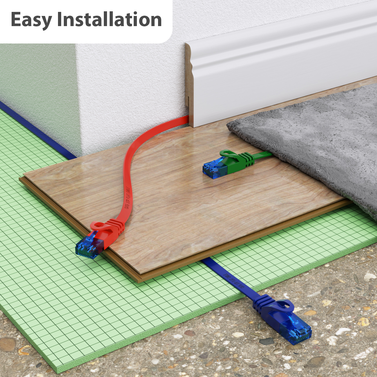 Mit den deleyCON CAT 6 Netzwerk Flachkabeln können Sie im Handumdrehen Ihre Netzwerkfähigen Geräte verbinden. Sie eignen sich hervorragend um unter Laminat oder an Fußleisten entlang verlegt zu werden.