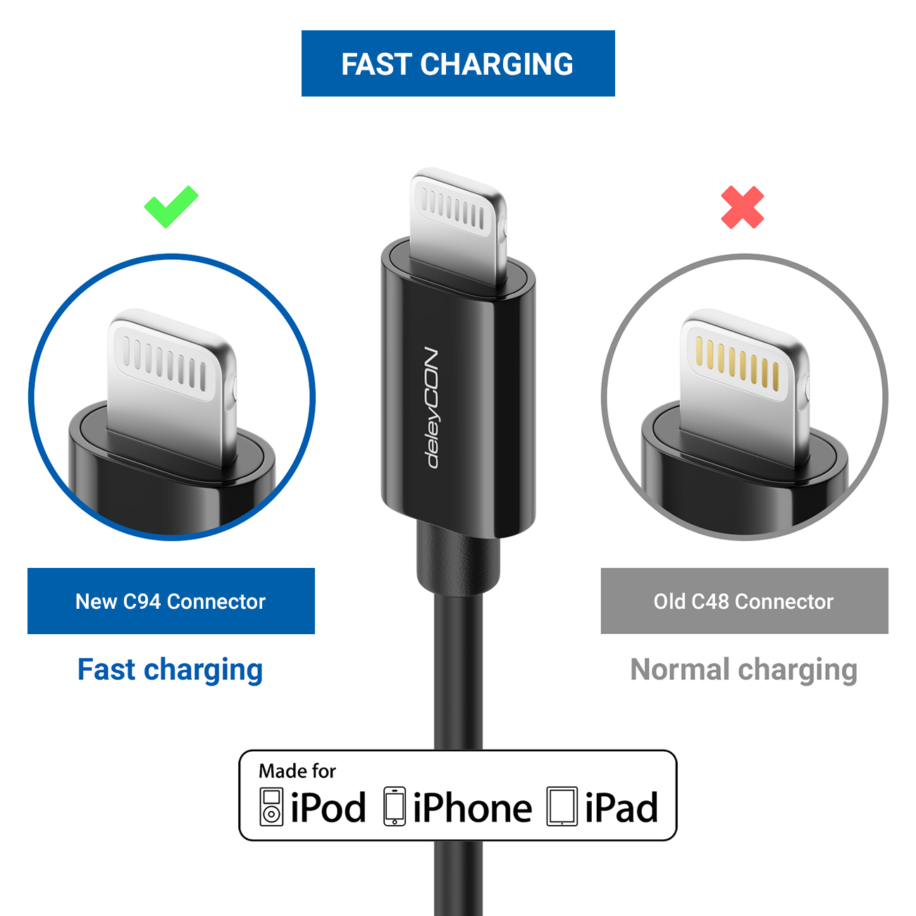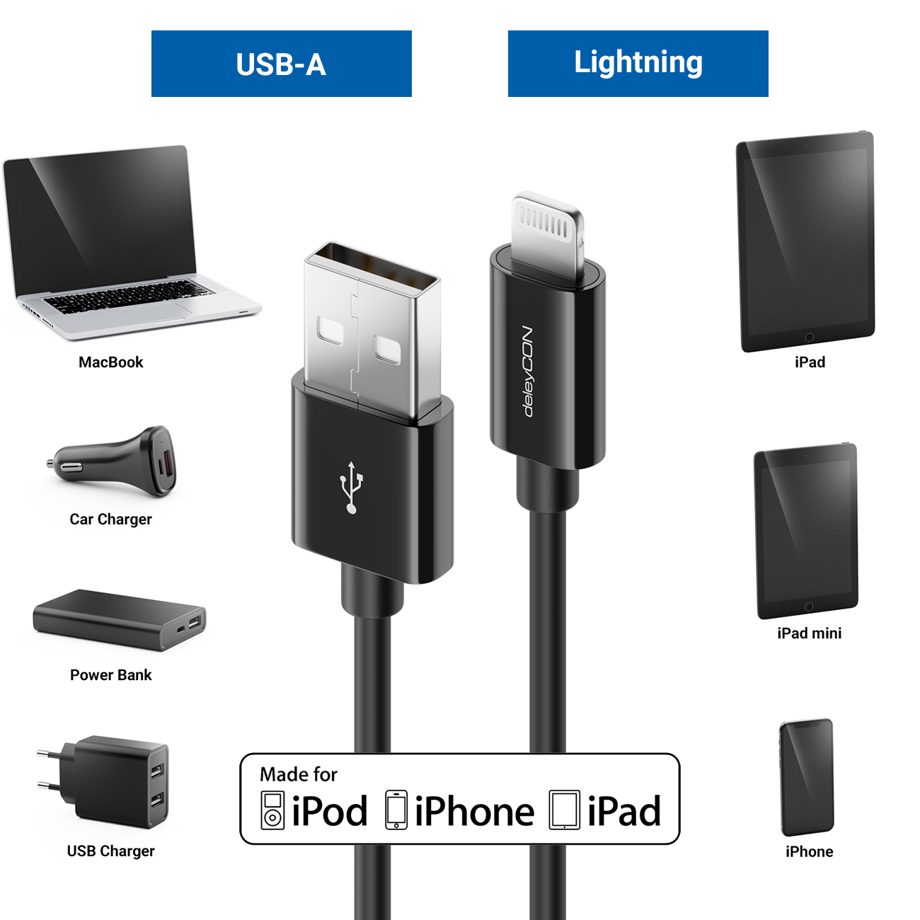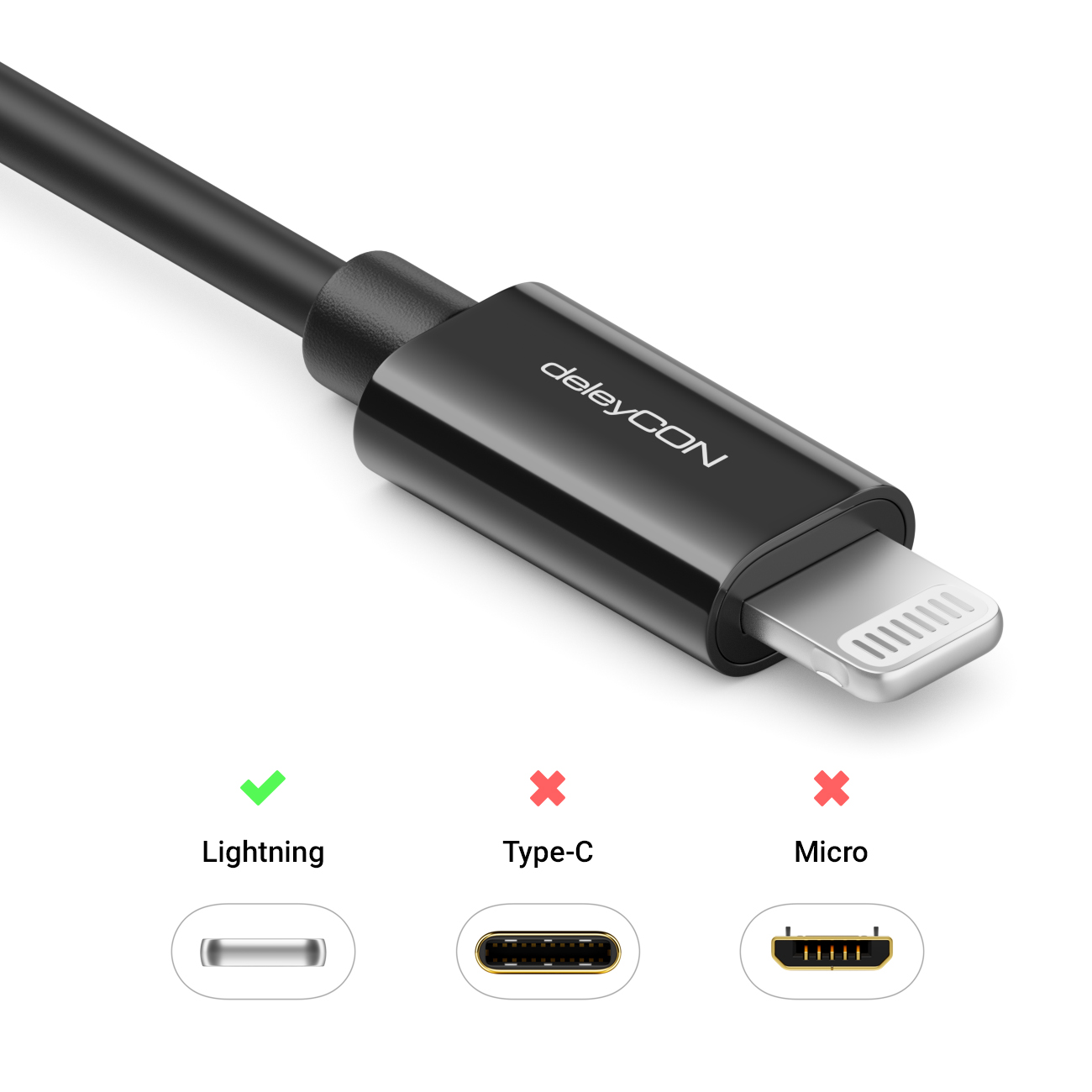 deleyCON Lightning 8 Pin USB Kabel (Apple MFI zertifiziert)