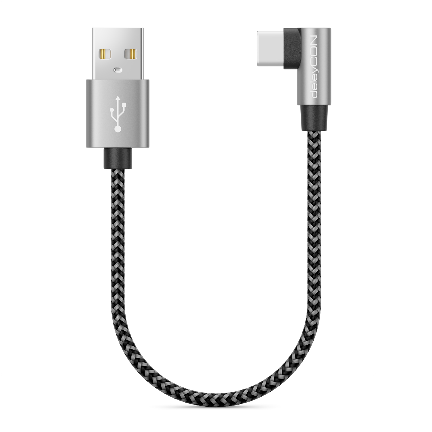 deleyCON 0,30m USB A zu USB C Kabel USB-C Stecker 90° Gewinkelt Kurze 30cm