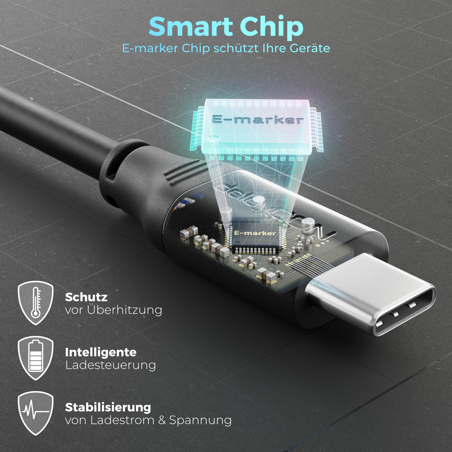- E-MARKER CHIP: Der integrierte E-Marker Chip schützt vor Überhitzung und optimiert die Ladegeschwindigkeit