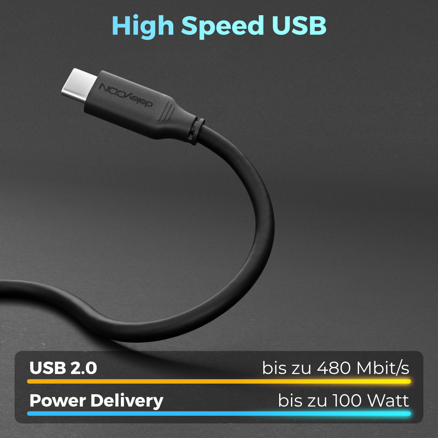 Das deleyCON USB-C auf USB-C Kabel bietet schnelles und zuverlässiges Laden für alle kompatiblen Geräte.