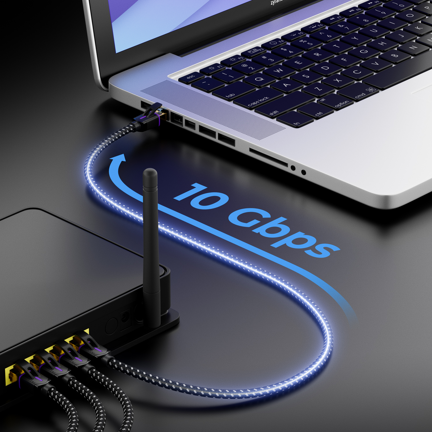 Das deleyCON Cat7 Patchkabel ermöglicht ultraschnelle Netzwerkverbindungen mit bis zu 10 Gbit/s und einer Frequenz von 600 MHz – ideal für stabile Datenübertragungen ohne Verzögerung.