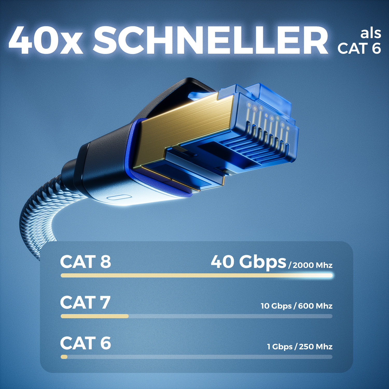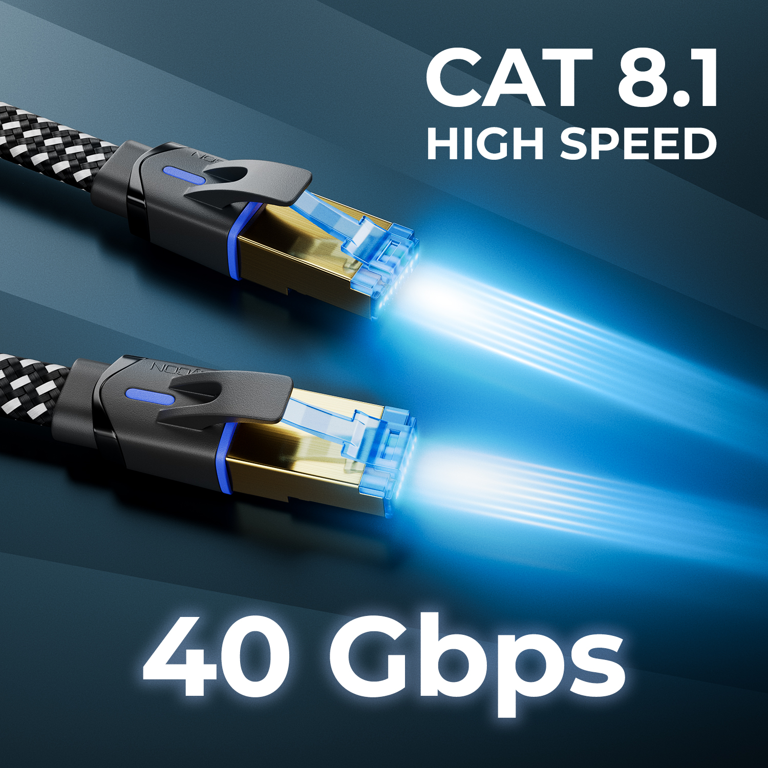 CAT8 Flachkabel U-FTP Nylon – Netzwerkkabel für 40 Gbit/s