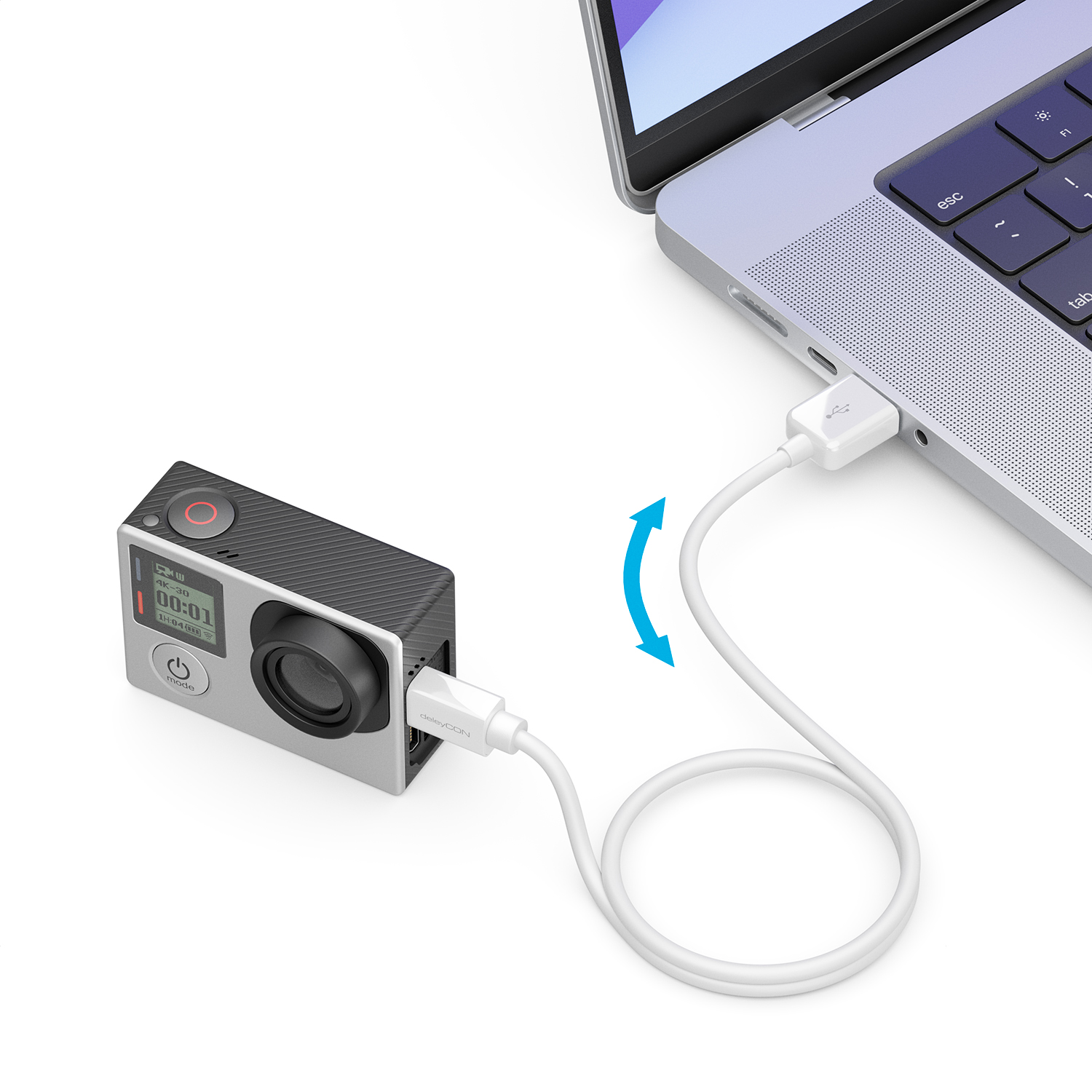 In dieser Variante bietet das deleyCON USB 2.0 High Speed Kabel folgende Anschlüsse: 1x USB A-Stecker zu 1x USB Micro B-Stecker.