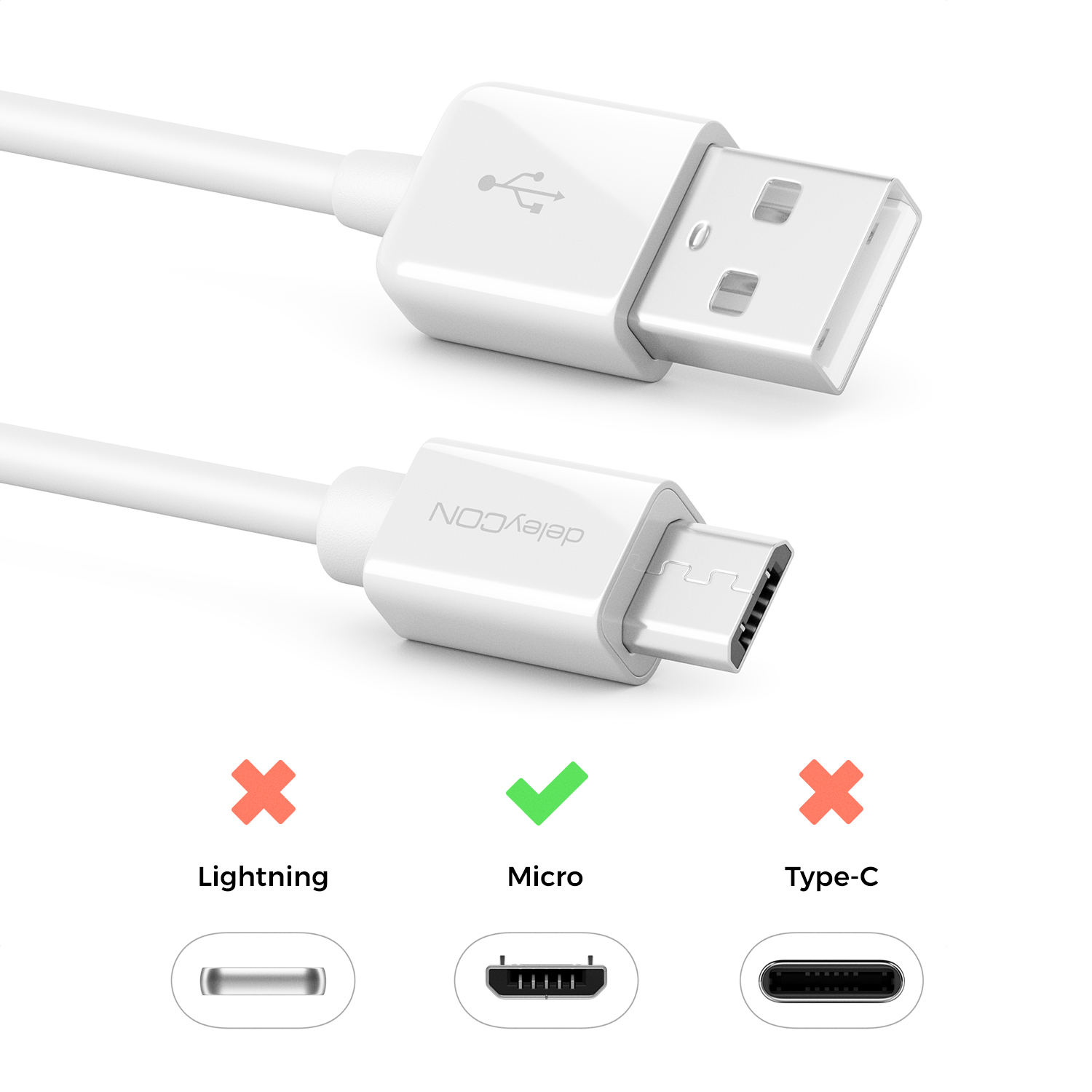 deleyCON 0,30m Micro USB Ladekabel Datenkabel Handys Smartphones Tablets Weiß
