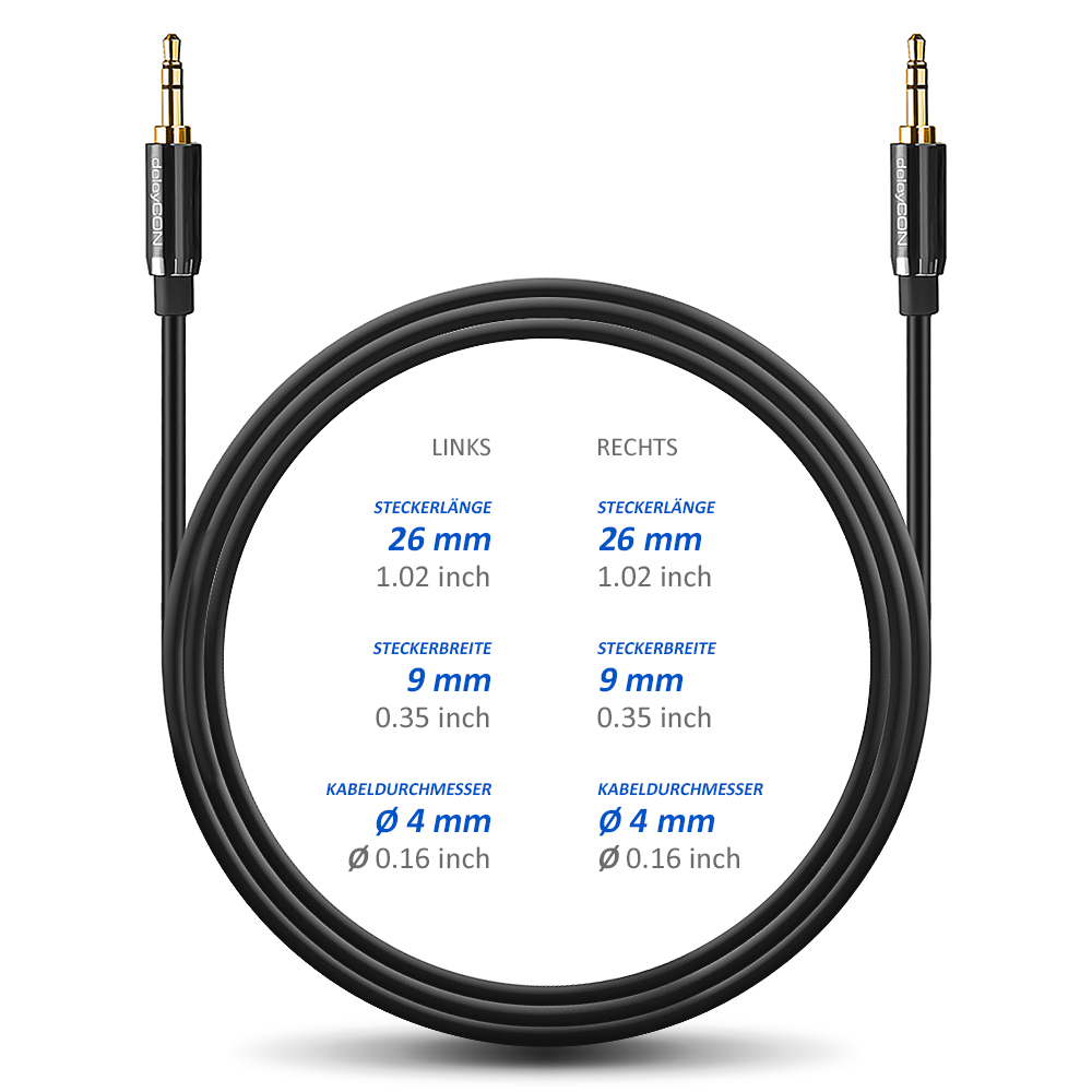 deleyCON 3,5mm Klinken AUX Kabel können Universell an allen Geräten eingesetzt werden, die über einen 3,5mm Klinken Eingang verfügen. Kompatibel zu Geräten wie z.B.: PC, Computer, Laptop, Notebook, Netbook, Handy, Smartphone, Tablet, MP3-Player, KFZ, Autoradio, HiFi-Receiver und viele Weitere.