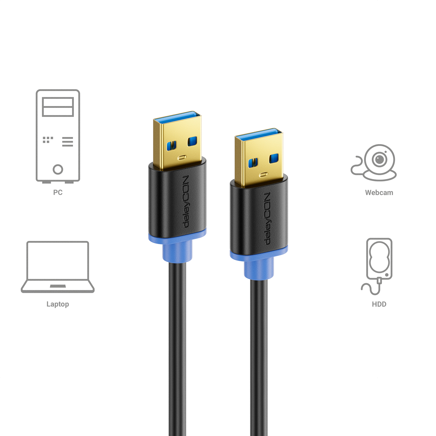 deleyCON PREMIUM USB 3.0 Super Speed Kabel - (USB A-Stecker zu USB A-Stecker)