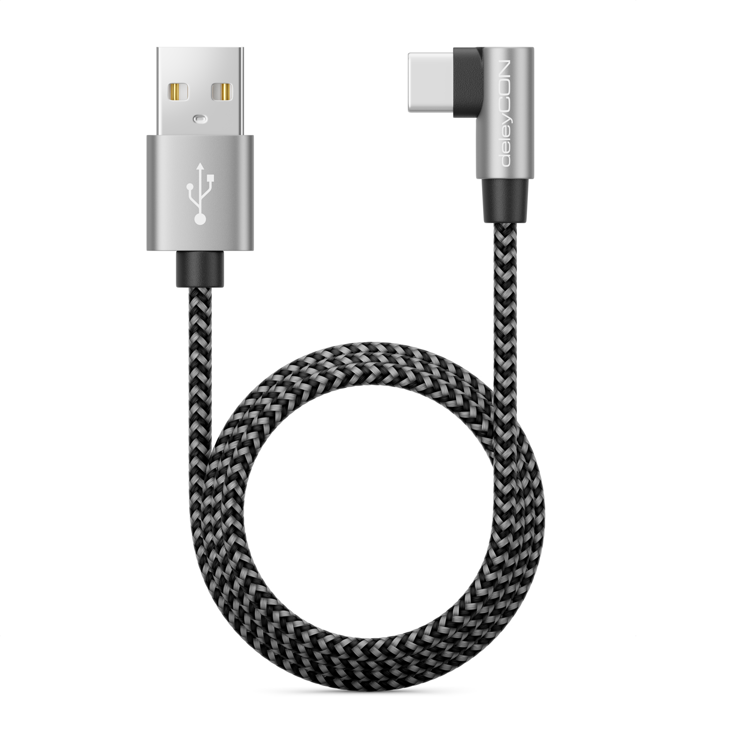 deleyCON 1m USB A zu USB C Kabel USB-C Stecker 90° Gewinkelt USB-A auf USB-C