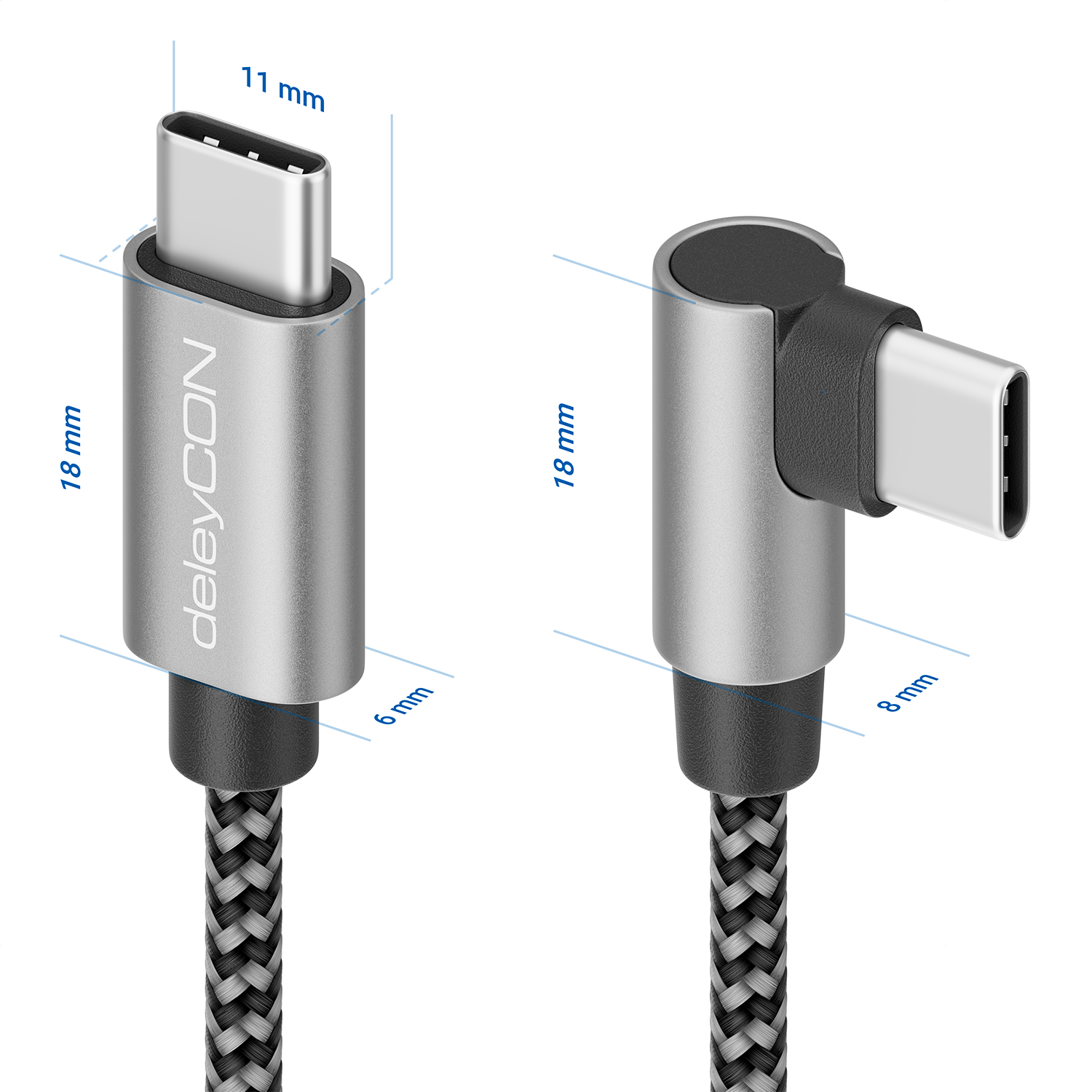 deleyCON 2m USB C Kabel 1x 90° Gewinkelt PD3.0 (60W Schnellladekabel) iPhone