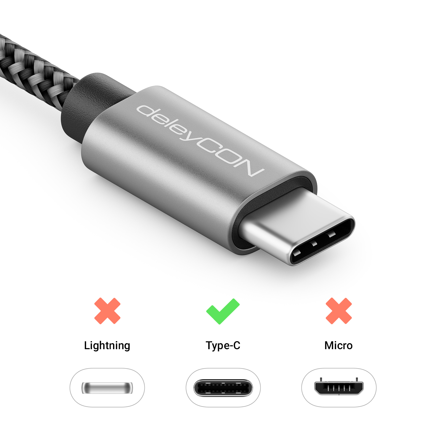 deleyCON 0,5m USB-C Kabel USB3.2 Gen2 (10Gbit/s, 100W, 4K60Hz)...