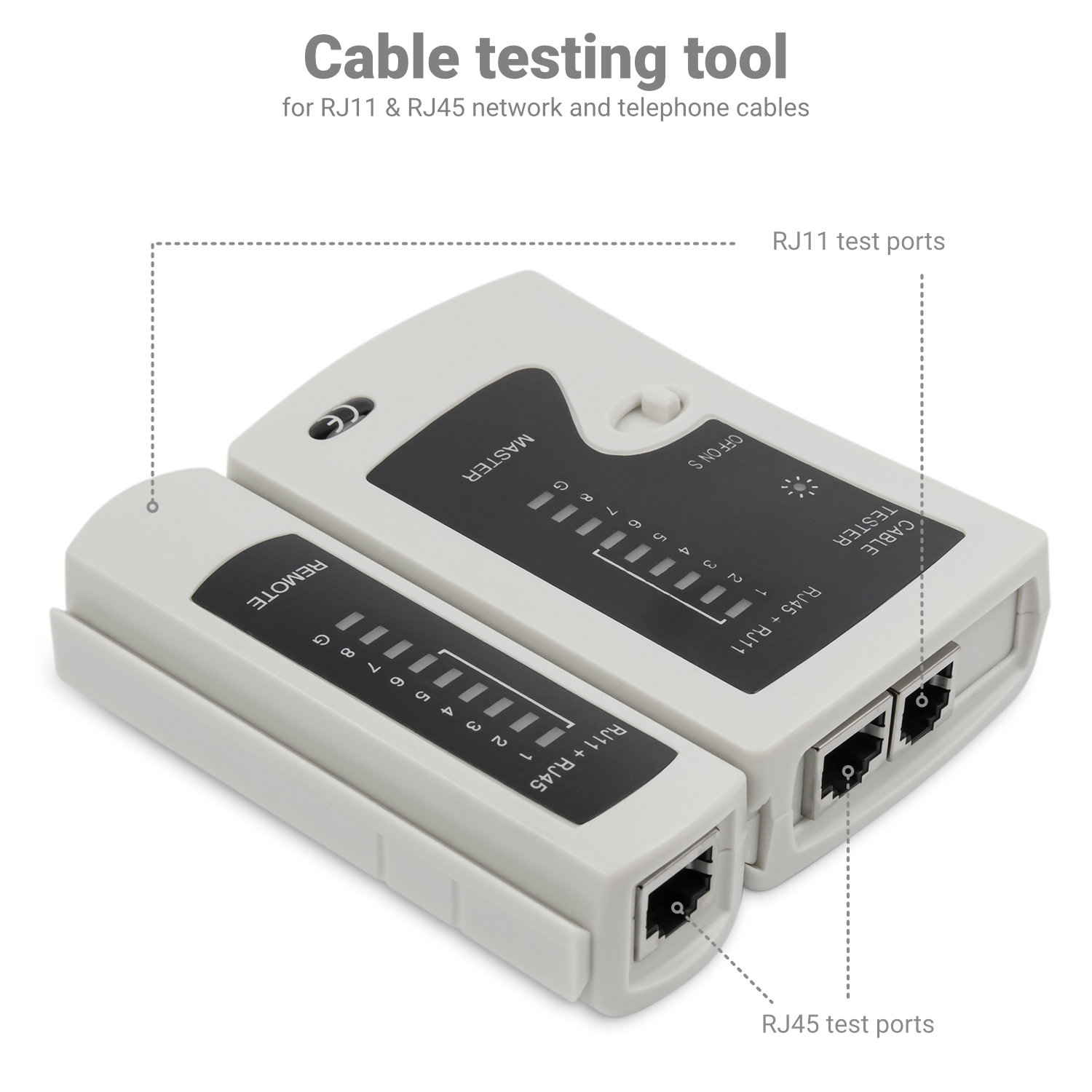 - 1x Kabeltester (RJ45 + RJ11) (Stromversorgung über 9V Block (nicht im Lieferumfang enthalten))