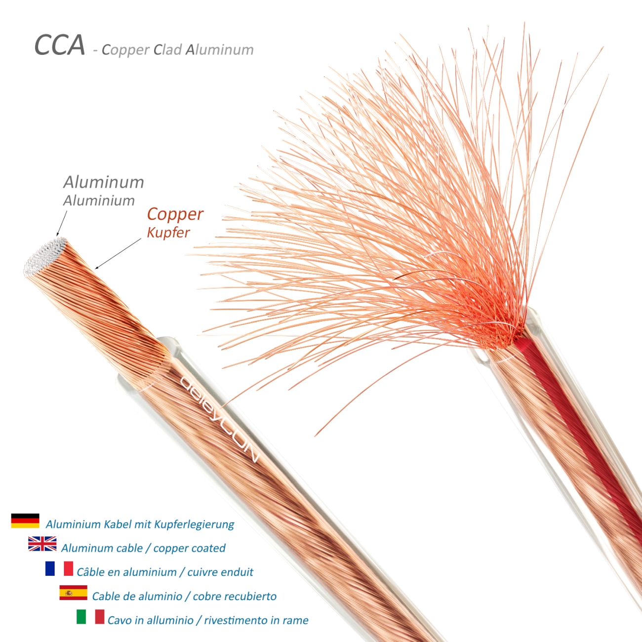 - Innenleiter: CCA / Kupferüberzogenes Aluminium