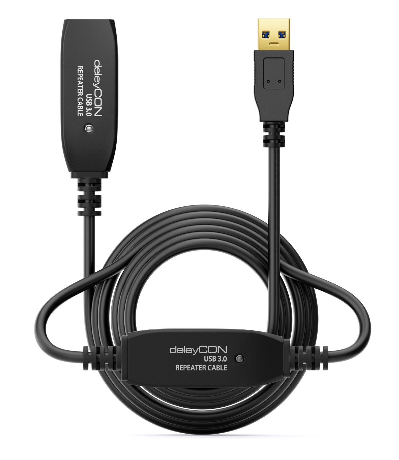 deleyCON 10m Aktive USB Verlängerung mit 2 Signalverstärker & Netzteil USB 3.0