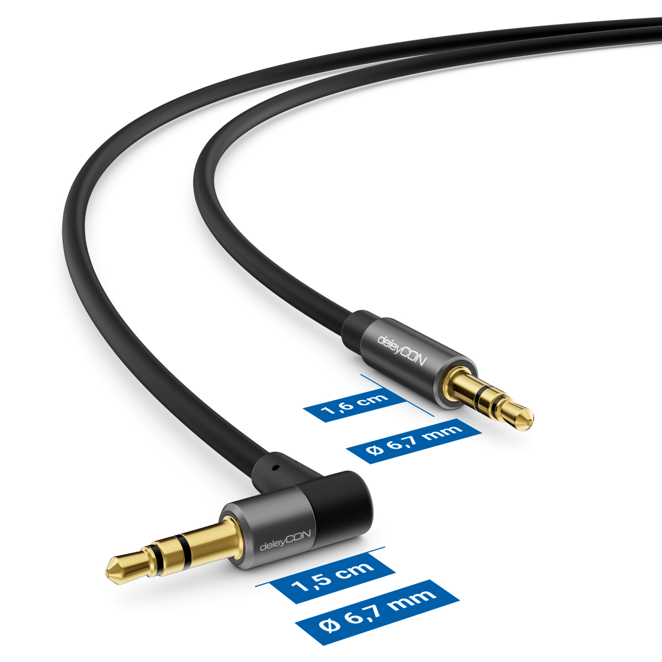 deleyCON 7,5m HQ Klinken Kabel 2x 90° Grad gewinkelt - 2x 3,5mm Klinken Stecker