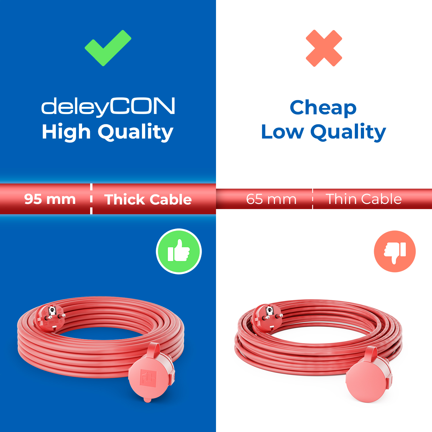 deleyCON 10m Outdoor Verlängerungskabel Stromkabel Stecker auf Buchse Rot