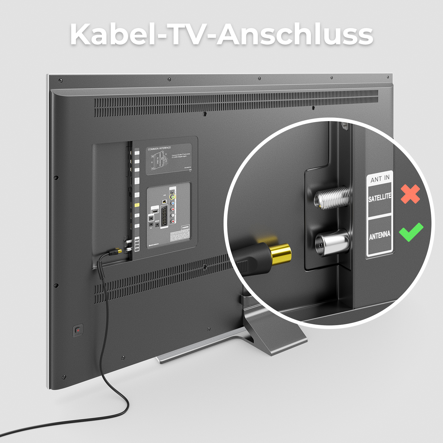 - Anschluss A: Koaxial TV Stecker