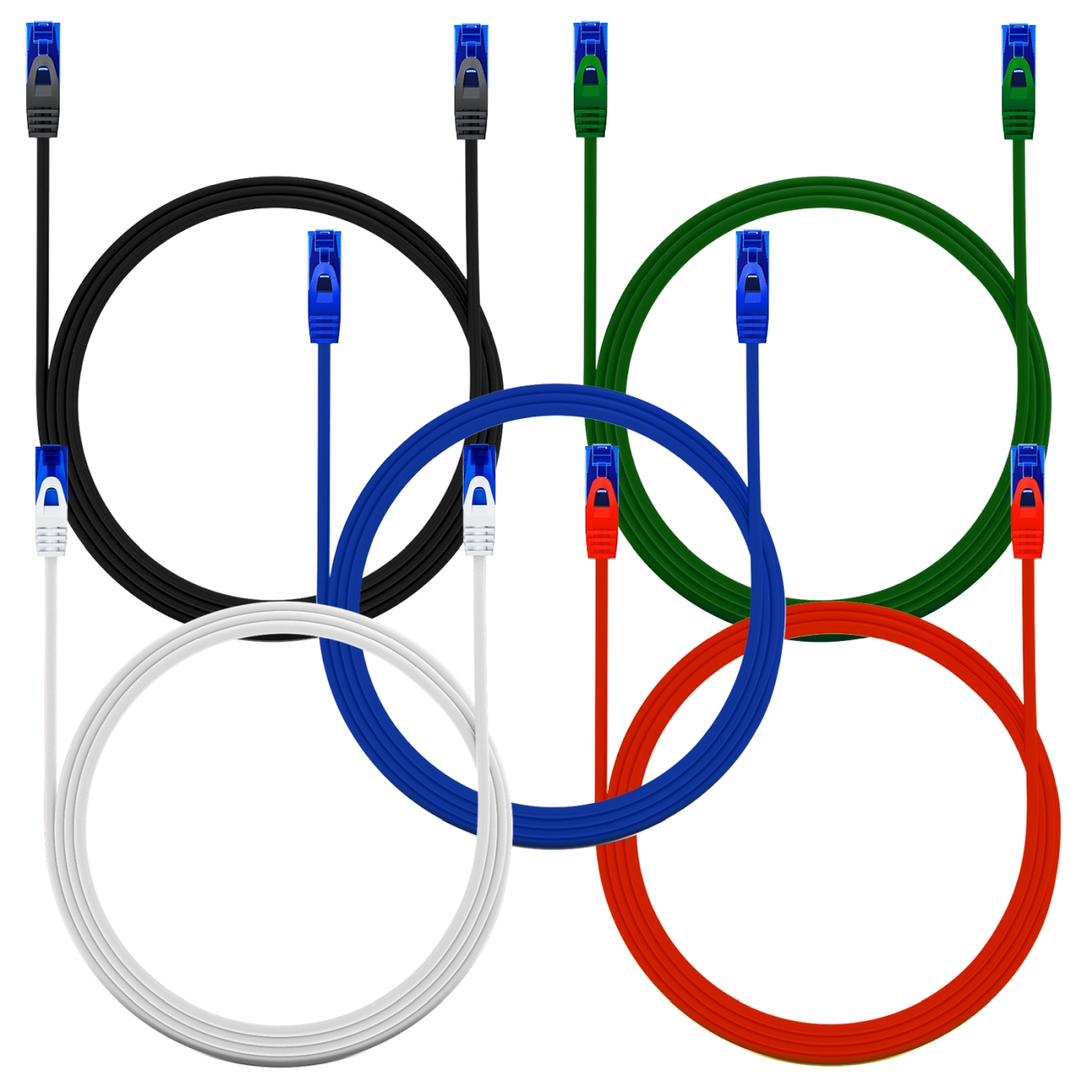 5x 0,25m CAT6 Flaches Netzwerkkabel 1,5mm Flachbandkabel U-UTP RJ45 Weiß