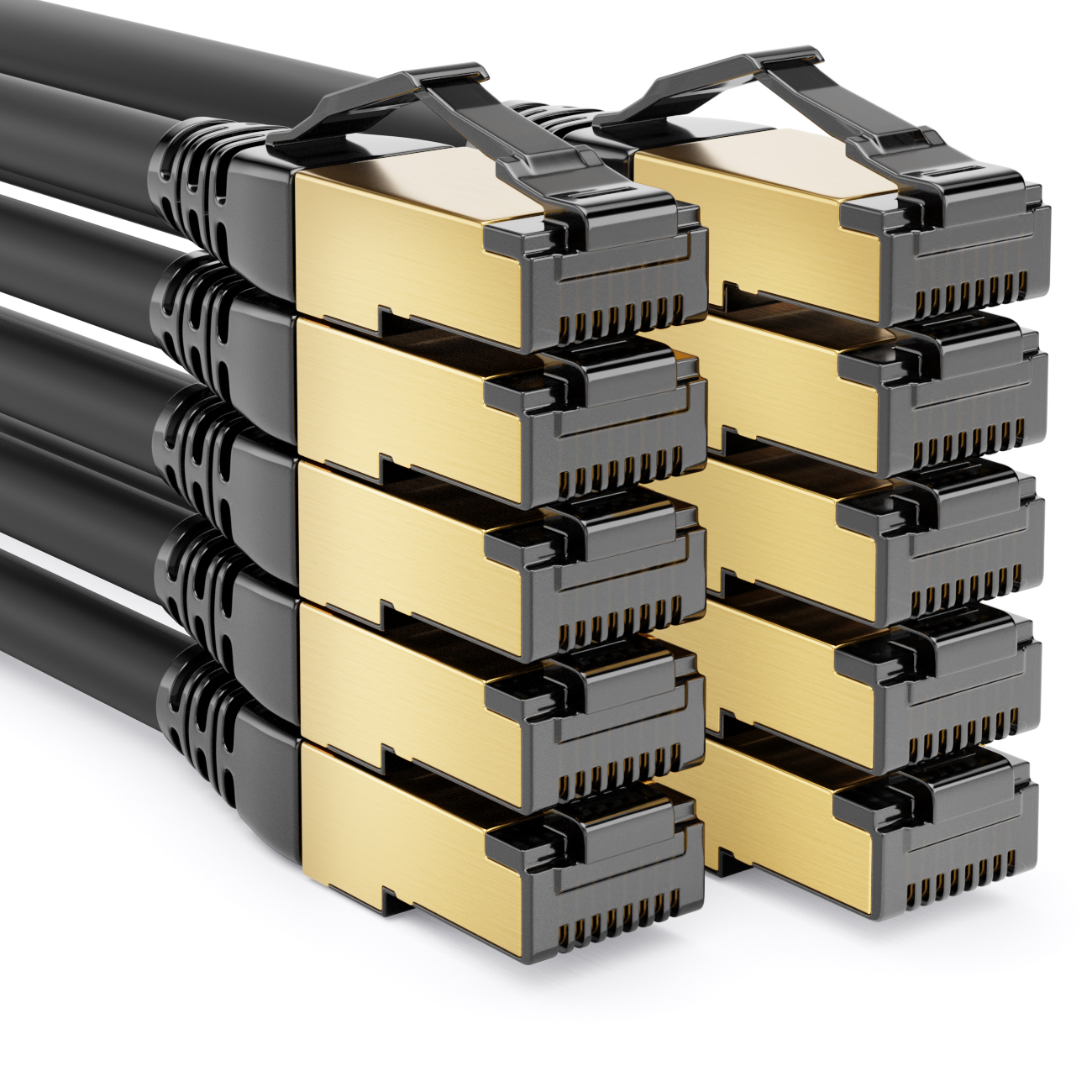 deleyCON 10x 0,5m CAT8.1 Patchkabel S/FTP PIMF 2000MHz 40Gbit RJ45 LAN Schwarz