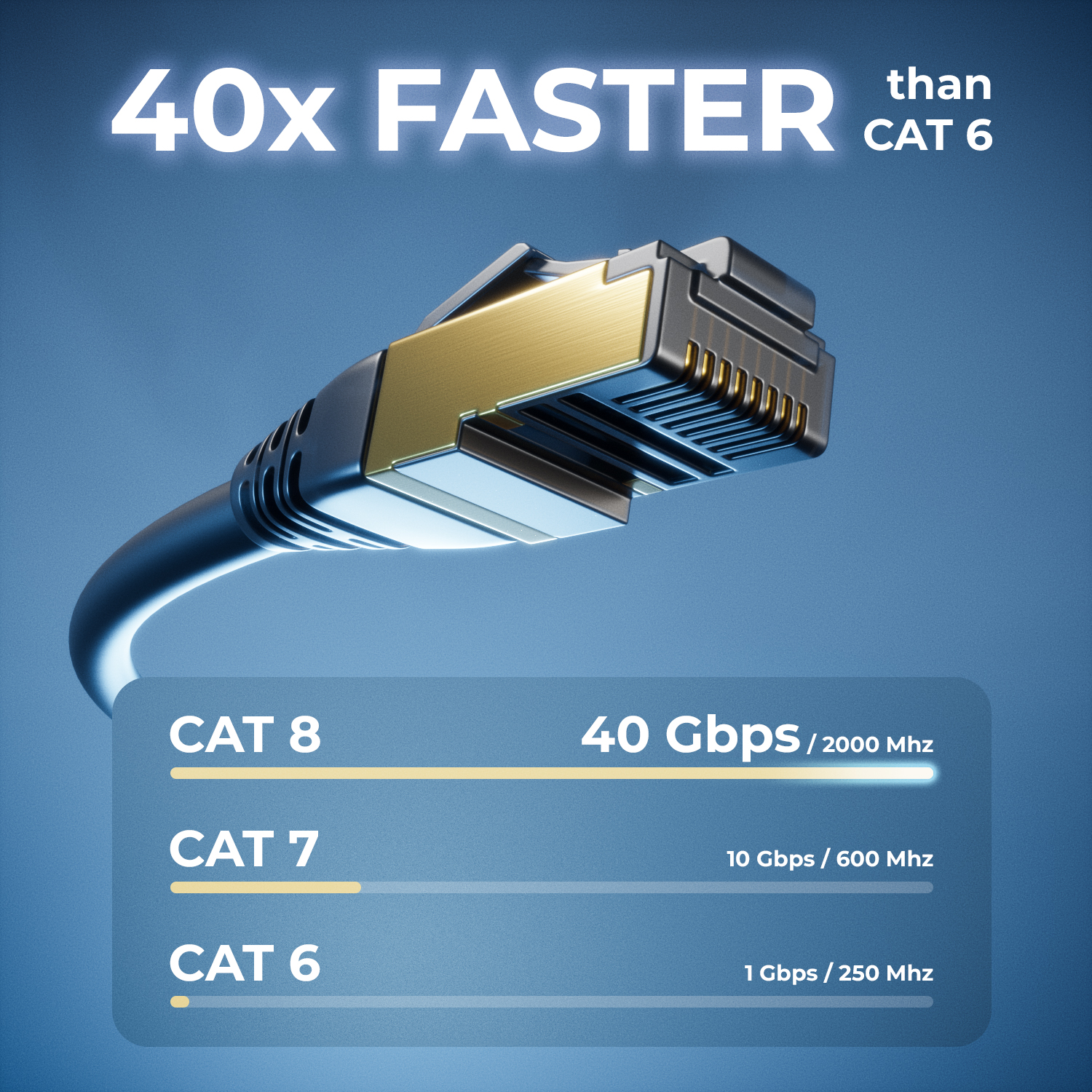 deleyCON 5x 1m CAT8 Flach Netzwerkkabel (40 Gbit/s, Kupfer, RJ45, Schwarz)
