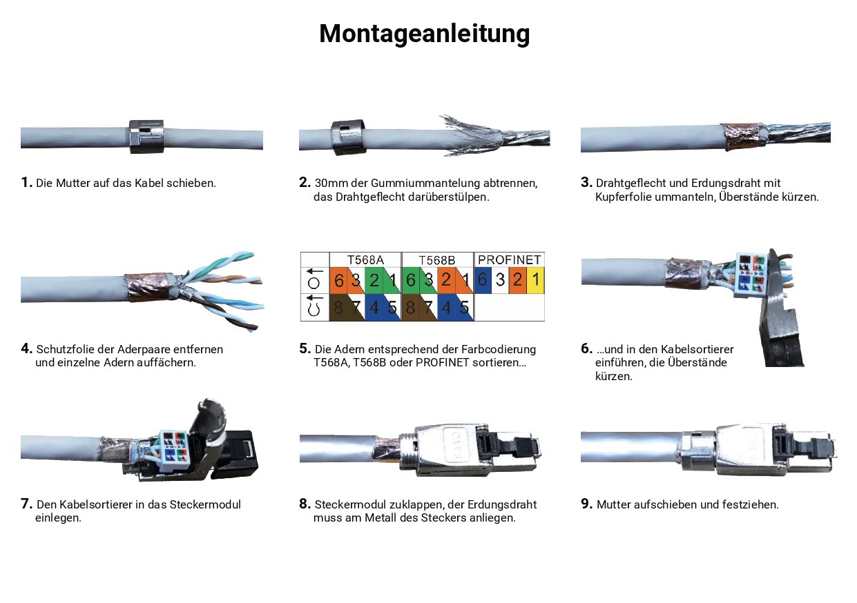 - Kabeladern entsprechend Farbcode positionieren
