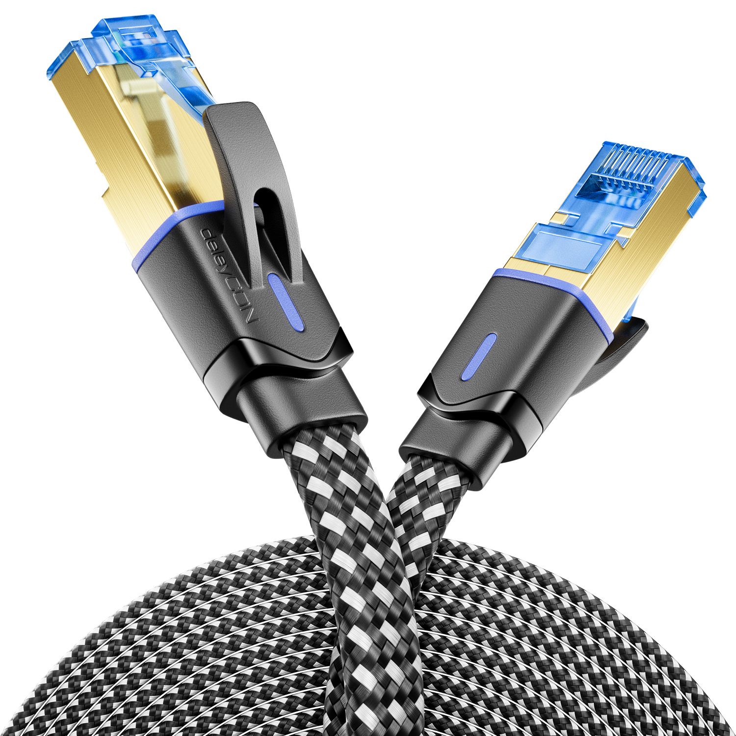 deleyCON 15m CAT8.1 Nylon Netzwerkkabel S/FTP PIMF 2000MHz 40Gbit RJ45 Schwarz
