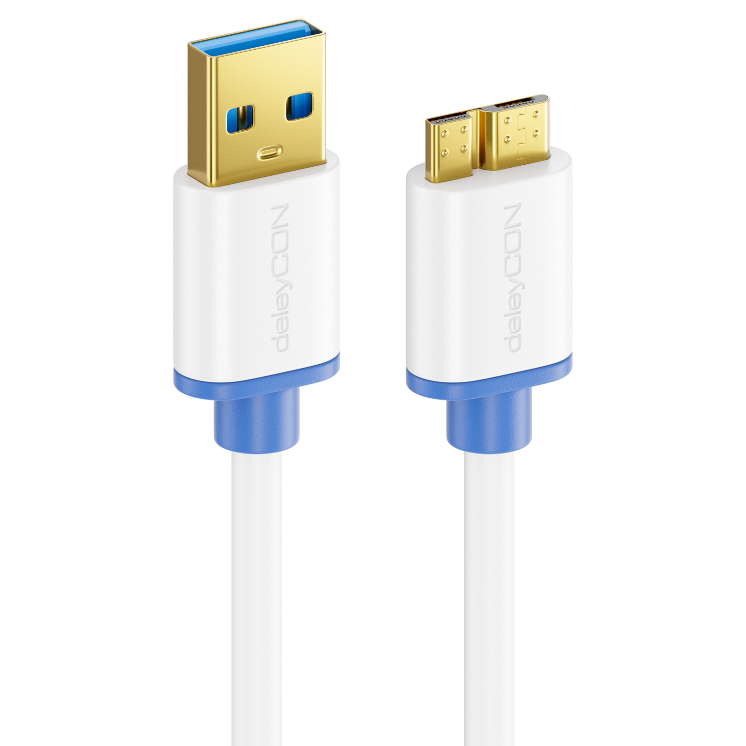 deleyCON 1,5m Micro USB 3.0 Datenkabel USB A-Stecker zu Micro B-Stecker Weiß