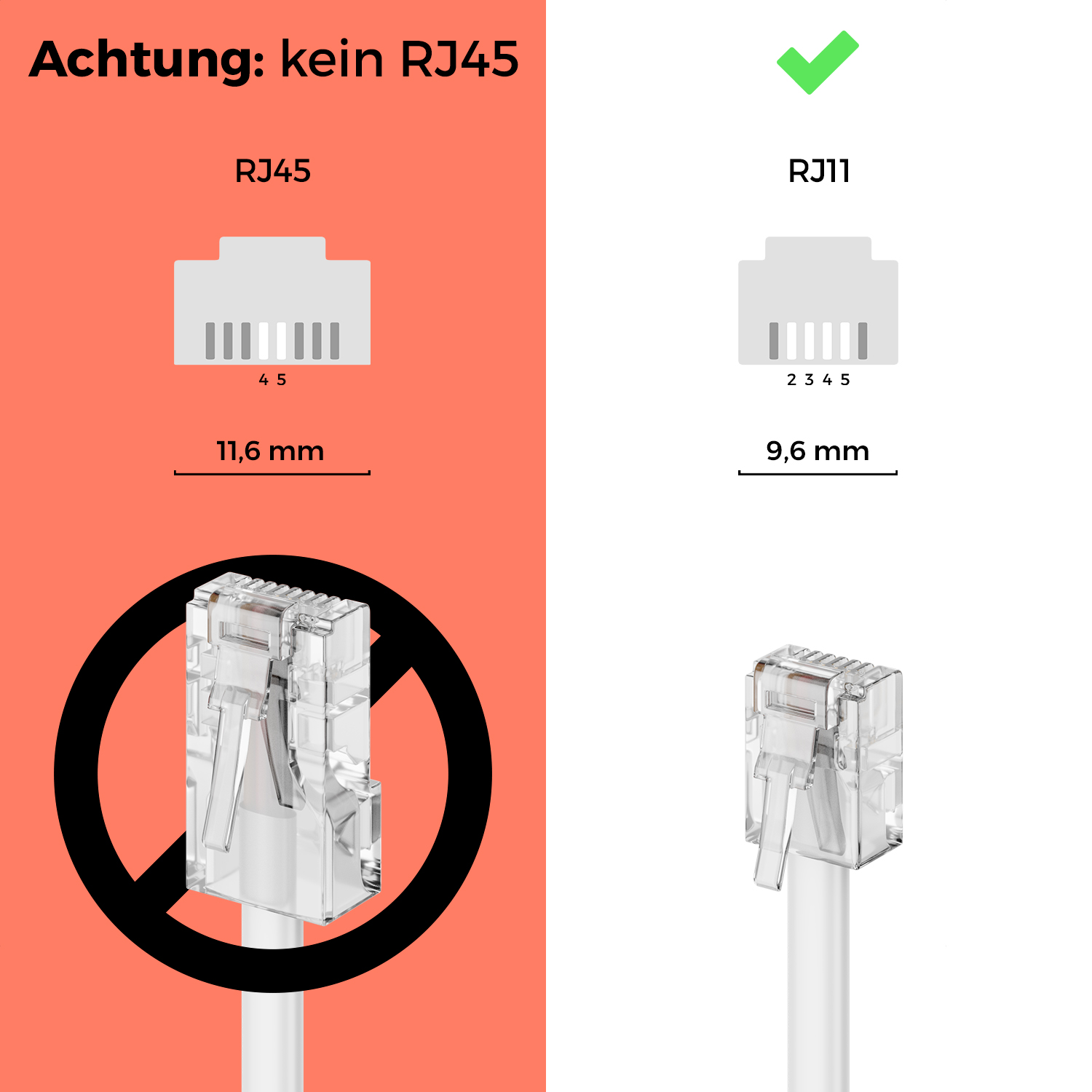 - Anschluss B: RJ11 Stecker 6P4C