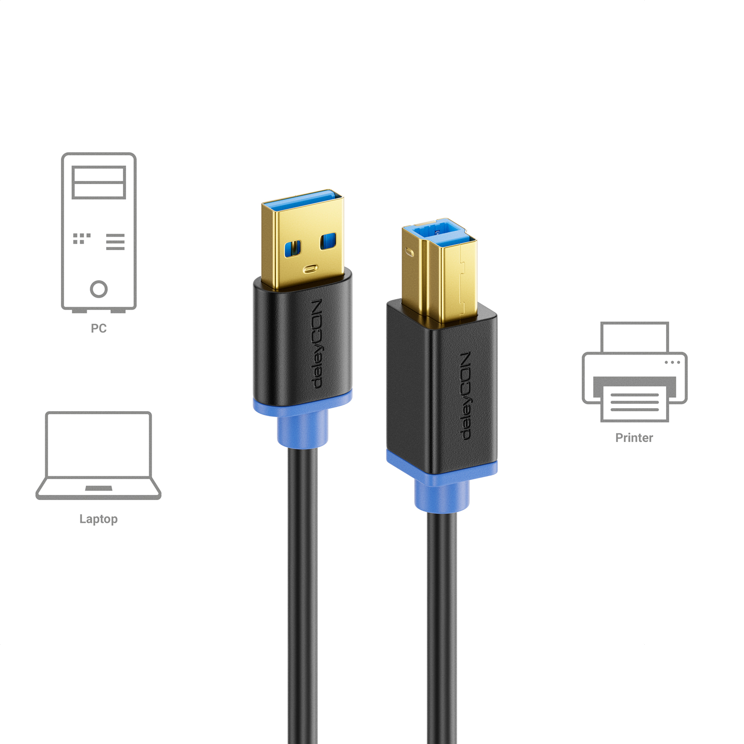 deleyCON PREMIUM USB 3.0 Super Speed Kabel - (USB A-Stecker zu USB B-Stecker)