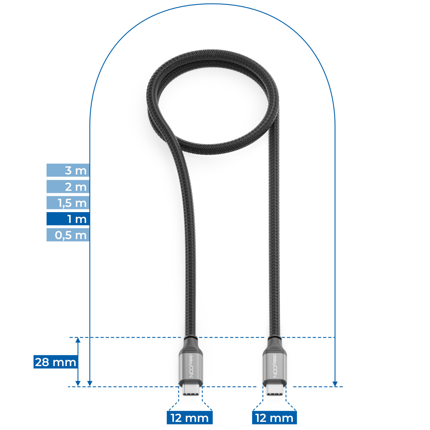 deleyCON 1m USB-C Kabel USB3.2 Gen2 (10Gbit/s, 100W, 4K60Hz) iPhone/Samsung/iPad