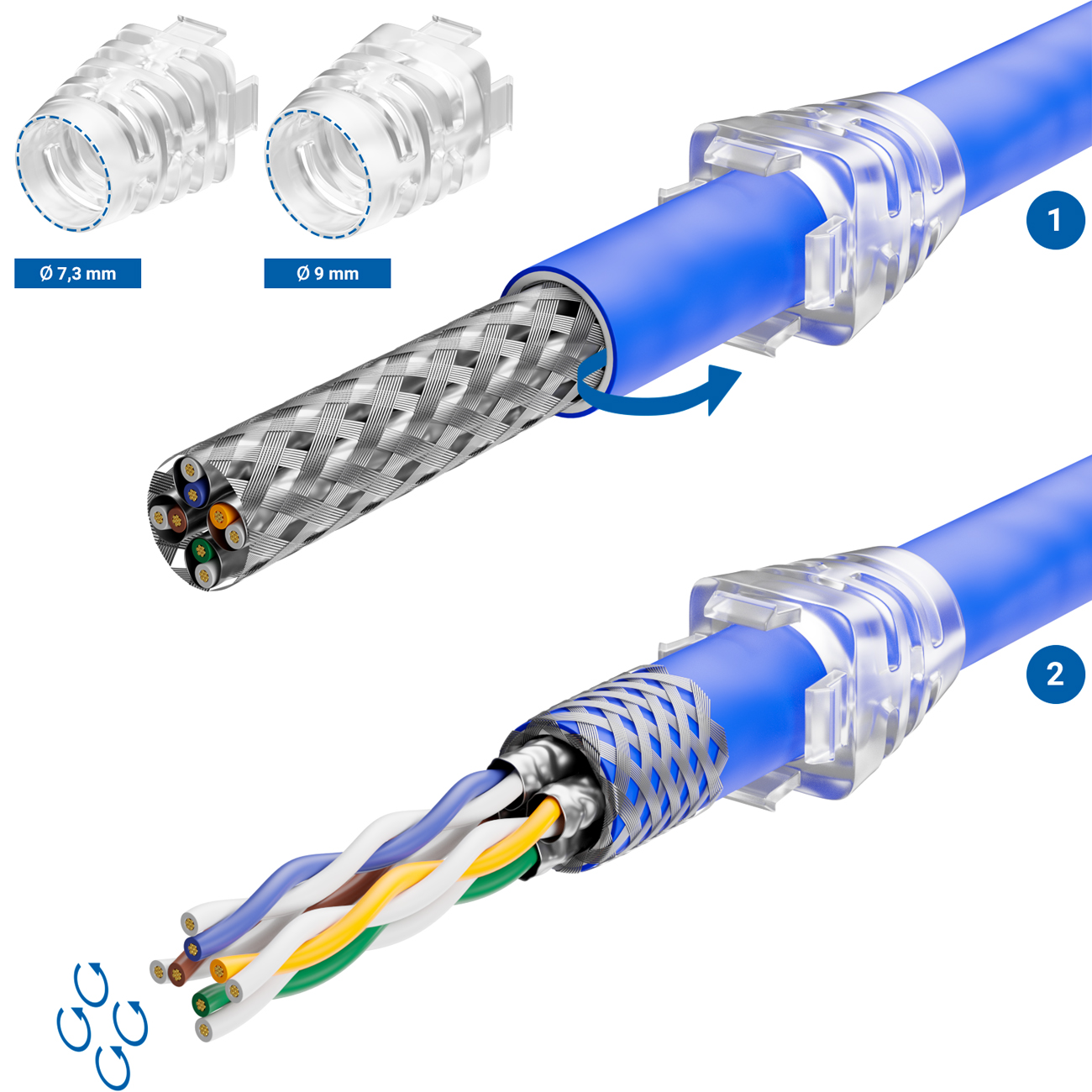 - Kompatibel mit CAT5 / CAT6 / CAT6a / CAT7 / CAT7a Verlegekabel