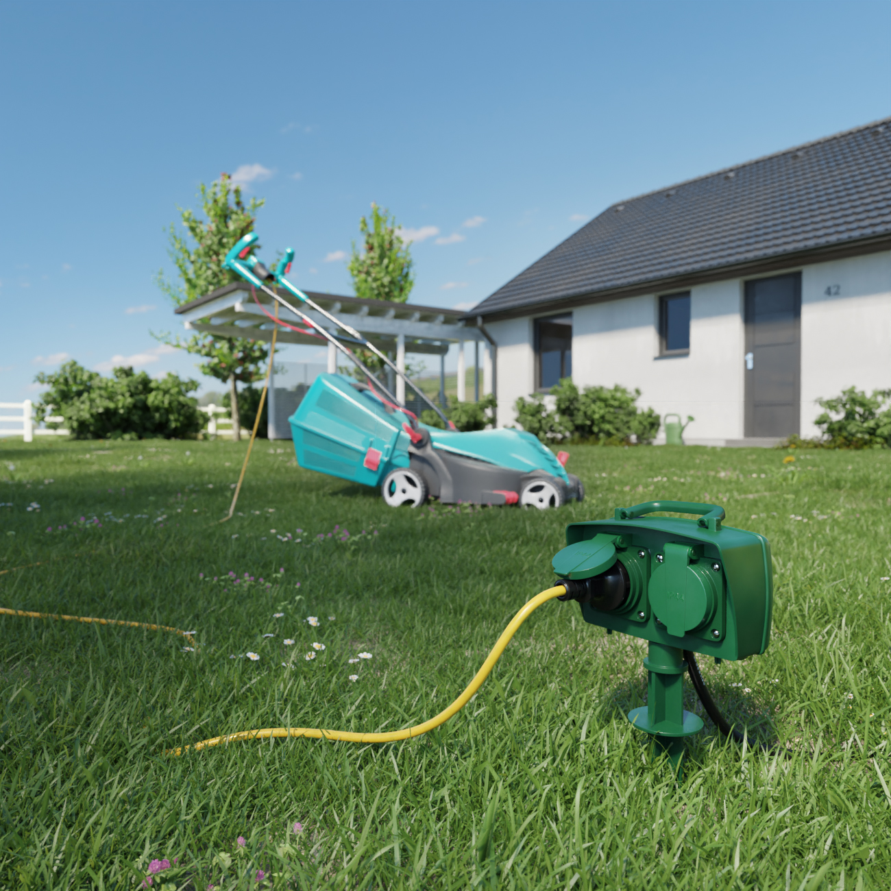 - Für z.B. Lichterkette, Außenlaterne, Grill, Teichpumpe, Rasenmäher etc.