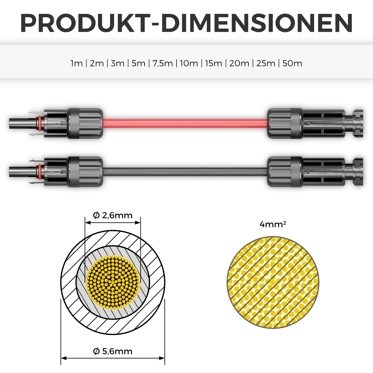 deleyCON 50m PV4 Solarkabel Verlängerung Set 4mm² für Photovoltaik-Anlagen