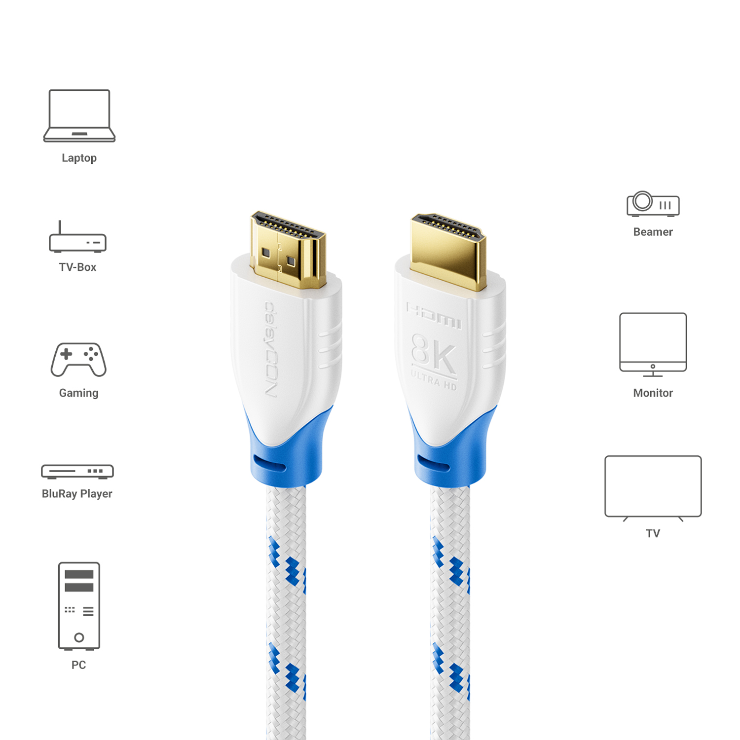 deleyCON 1m 8K UHD-2 HDMI 2.1 Nylon Kabel 8K@60Hz 4K@120Hz DTS HDR eARC Weiß